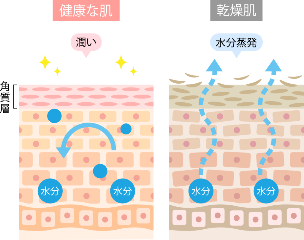 乾燥は、『水分が少ない状態』もありますが、根本的な問題は『水分を守るバリア機能が弱っている状態』です。