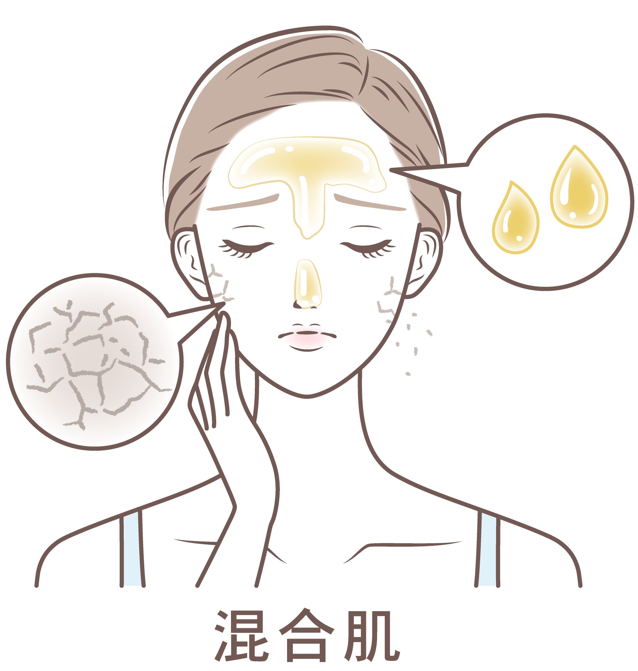 混合肌とは、部分的に「脂性肌」と「乾燥肌」の特徴をあわせ持つ肌質です。